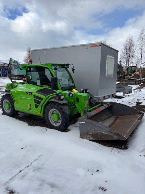 Maskinvikt 5 ton, personkorg, planerskopa, gafflar, lyfthöjd 6,1m, lyftkapacitet 2700kg. endast 2 meter hög.